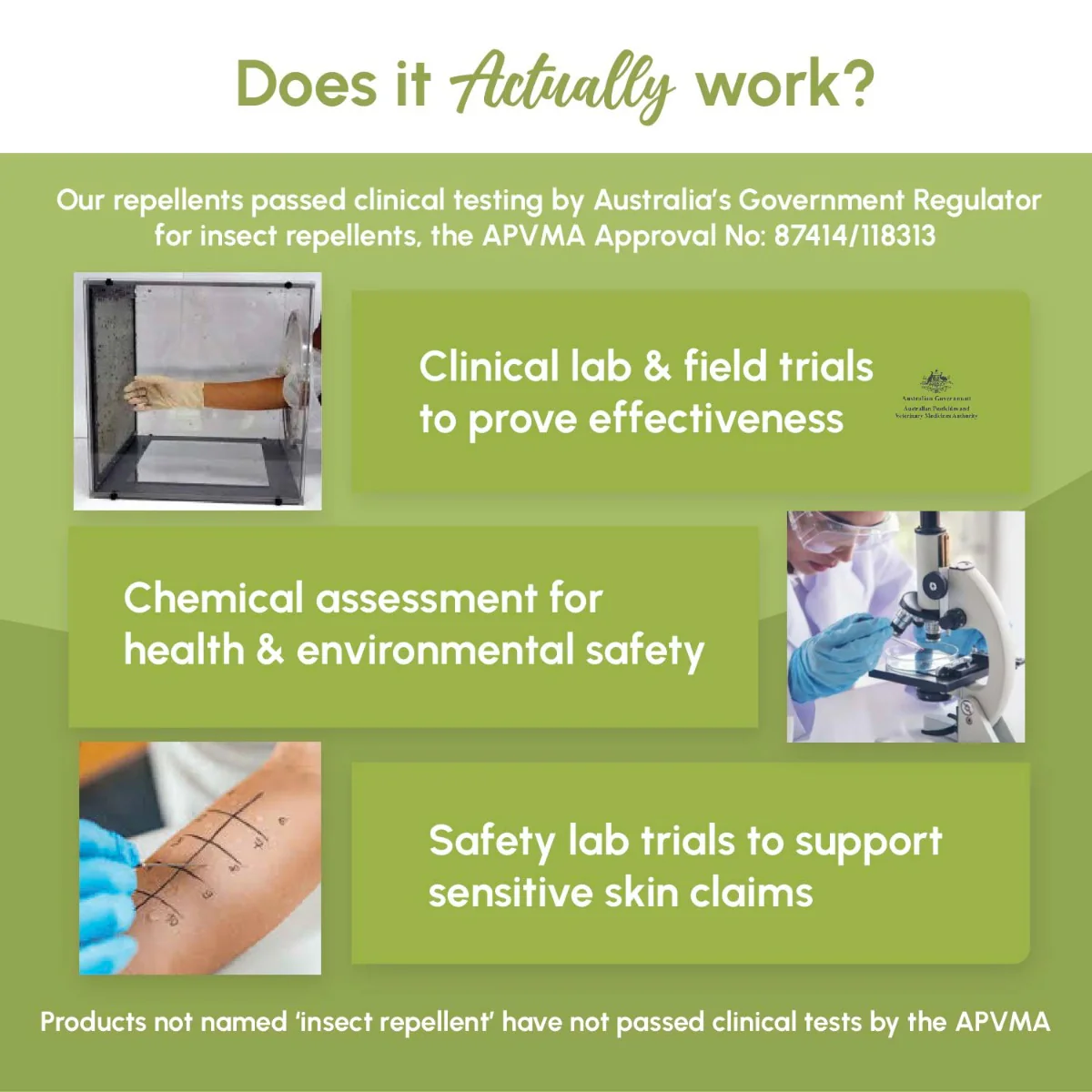 Clinically Proven - Developed in Darwin, Tested in Kakadu. Independent clinical trials prove that this natural repellent provides long-lasting, tropical-strength protection against mozzies, midges & sandflies that carry harmful viruses such as Ross River and Dengue. Registered with the APVMA - Australia's regulation body for insect repellents.